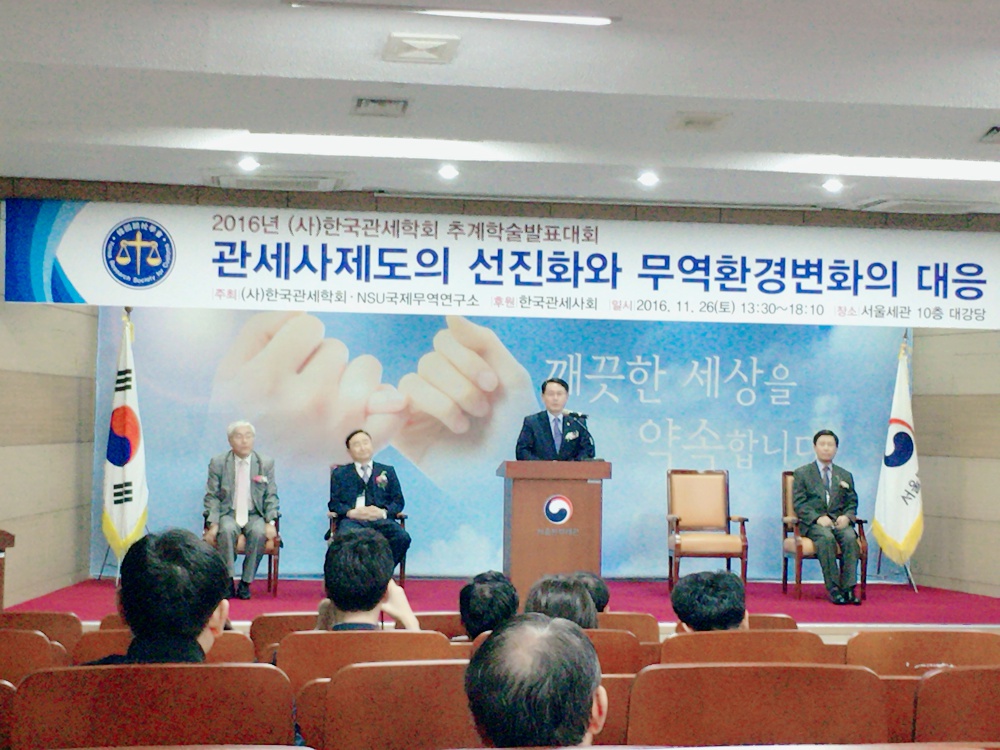 2016년 추계학술발표대회 개회식에서 천홍욱 관세청장님의 축사가 있었습니다.