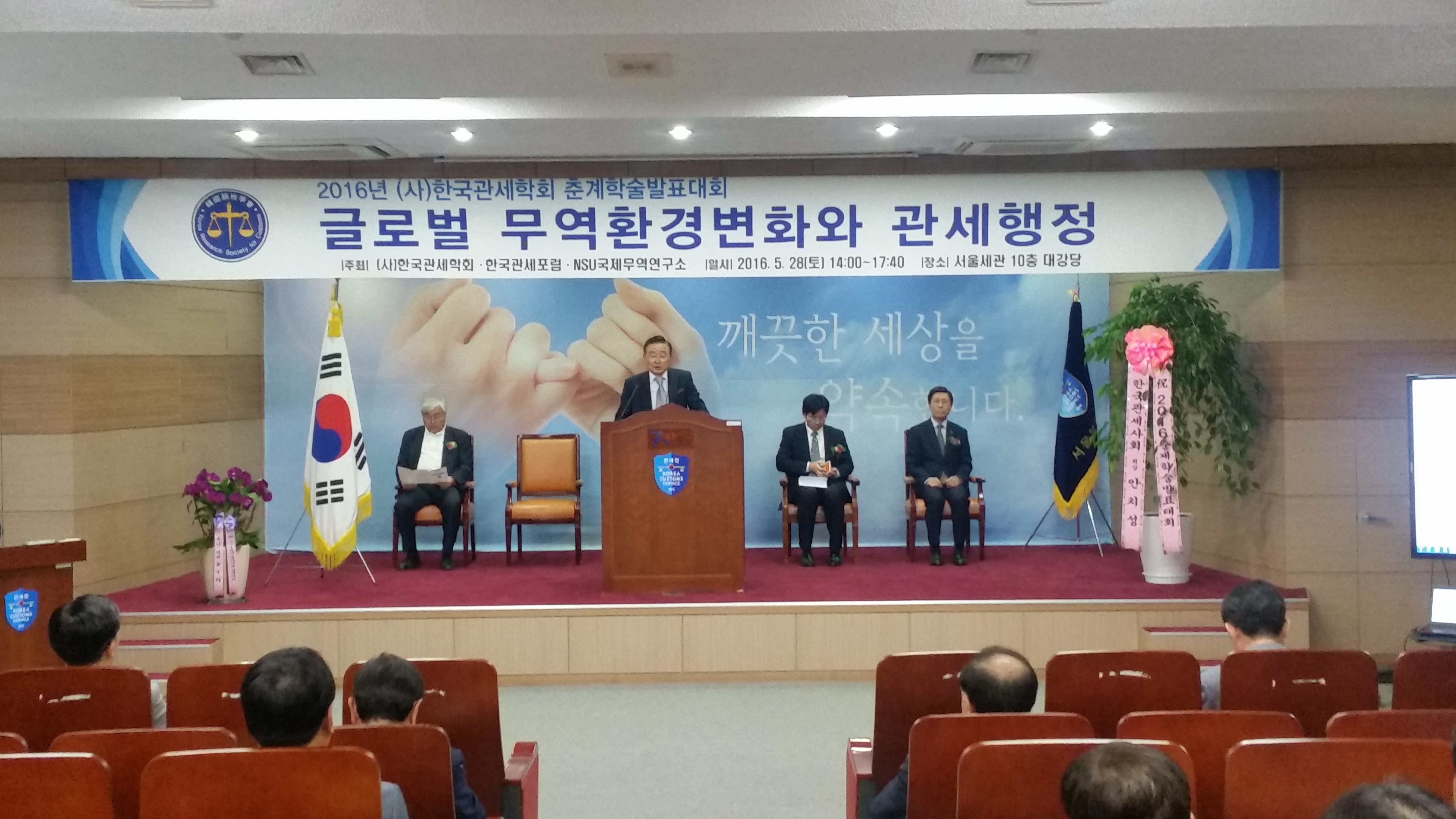 2016년 춘계학술발표대회가 2016년 5월 28일 14:00, 서울본부세관 대강당에서 개최되었습니다. 류수현 회장님의 개회사가 있었습니다.